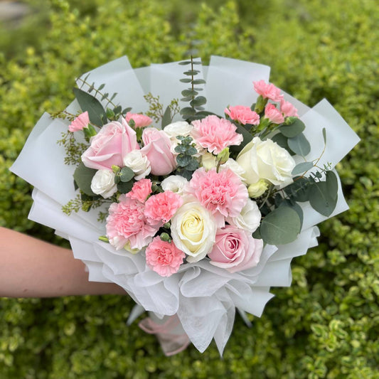 {M9} Spring- pink, lilac & white rose bouquet (grad)