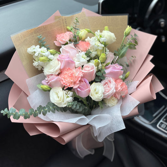{M9} Spring- pink, lilac & white rose bouquet