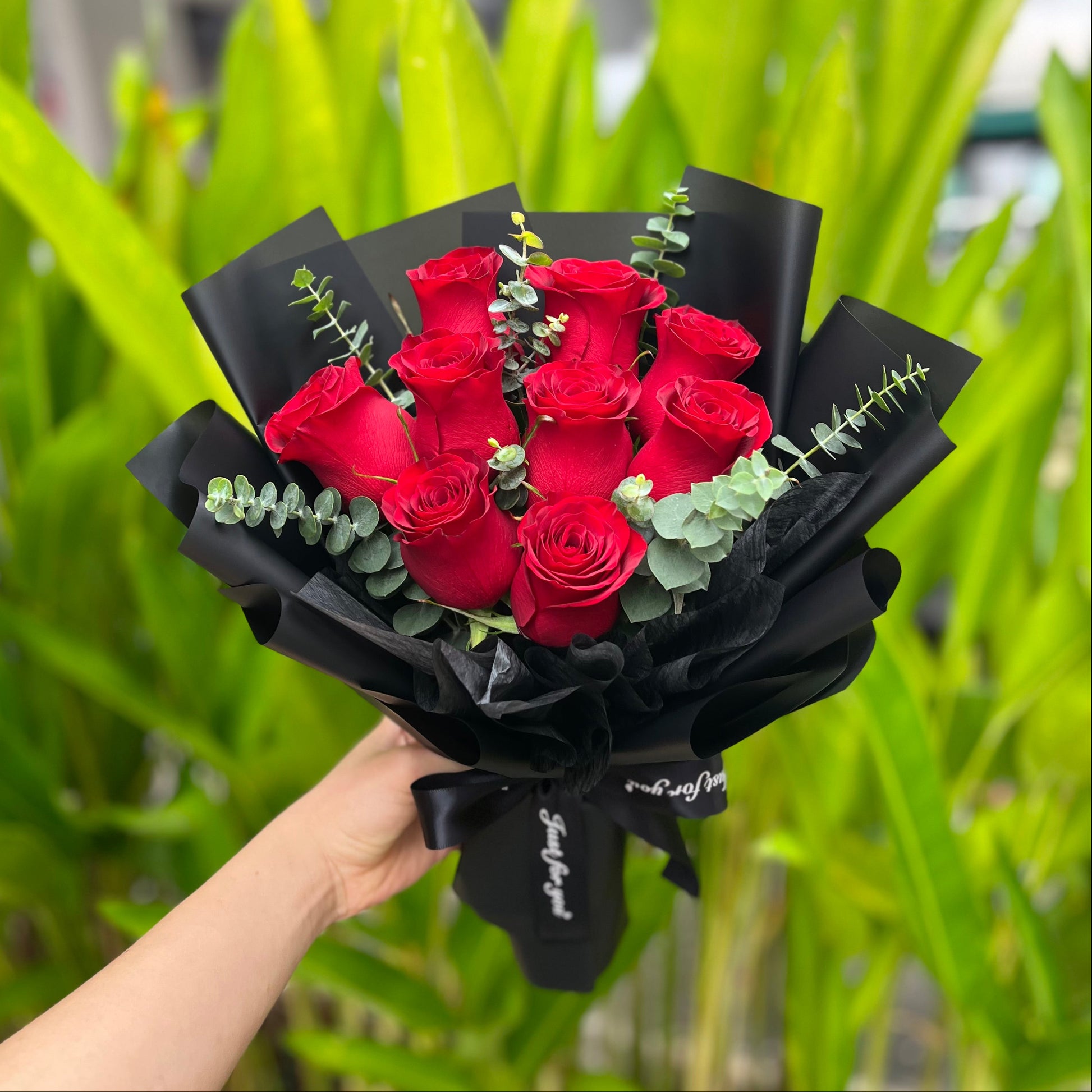 VDAY 9 Rose Bouquet with Eucalyptus